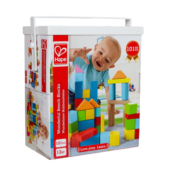 – Incluye 101 bloques de diferentes formas: cilindros, cubos, triángulos y rectángulos.
