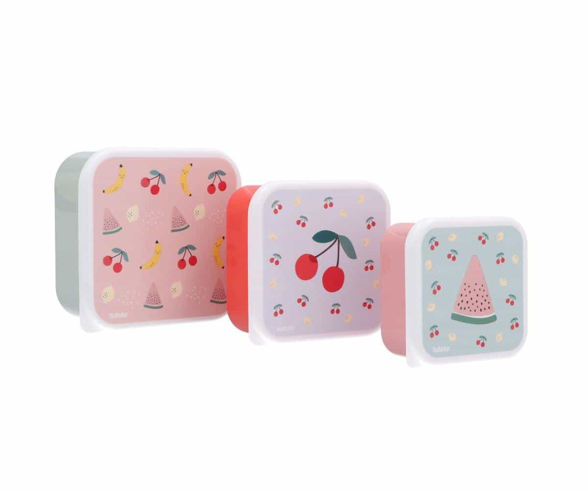 Set de 3 cajitas almuerzo, con diseños exclusivos de Tutete, y fenomenal para llevar distintos tipos de alimentos separados al colegio.
