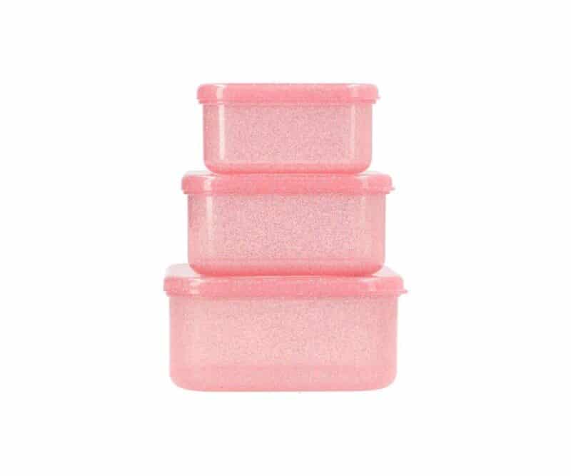 Set de 3 cajitas almuerzo glitter estupendas para llevar distintos tipos de alimentos separados al colegio, de excursión o a cualquier parte que vayas.