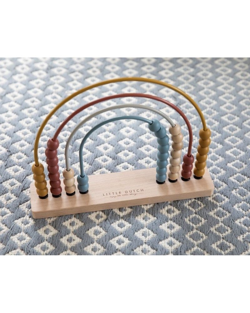 Este precioso Ábaco de Arco Iris fabricado con madera de bosques sostenibles es un juguete perfecto para los más pequeños. Además de divertirse muchísimo, es un juguete muy práctico en el aprendizaje de contar. Este ábaco de la marca Little Dutch de su colección Pure & Nature, además de sostenible, es un accesorio perfecto en la decoración de la habitación de los más pequeños de la casa gracias a su precioso diseño y la calidad que muestra a simple vista.