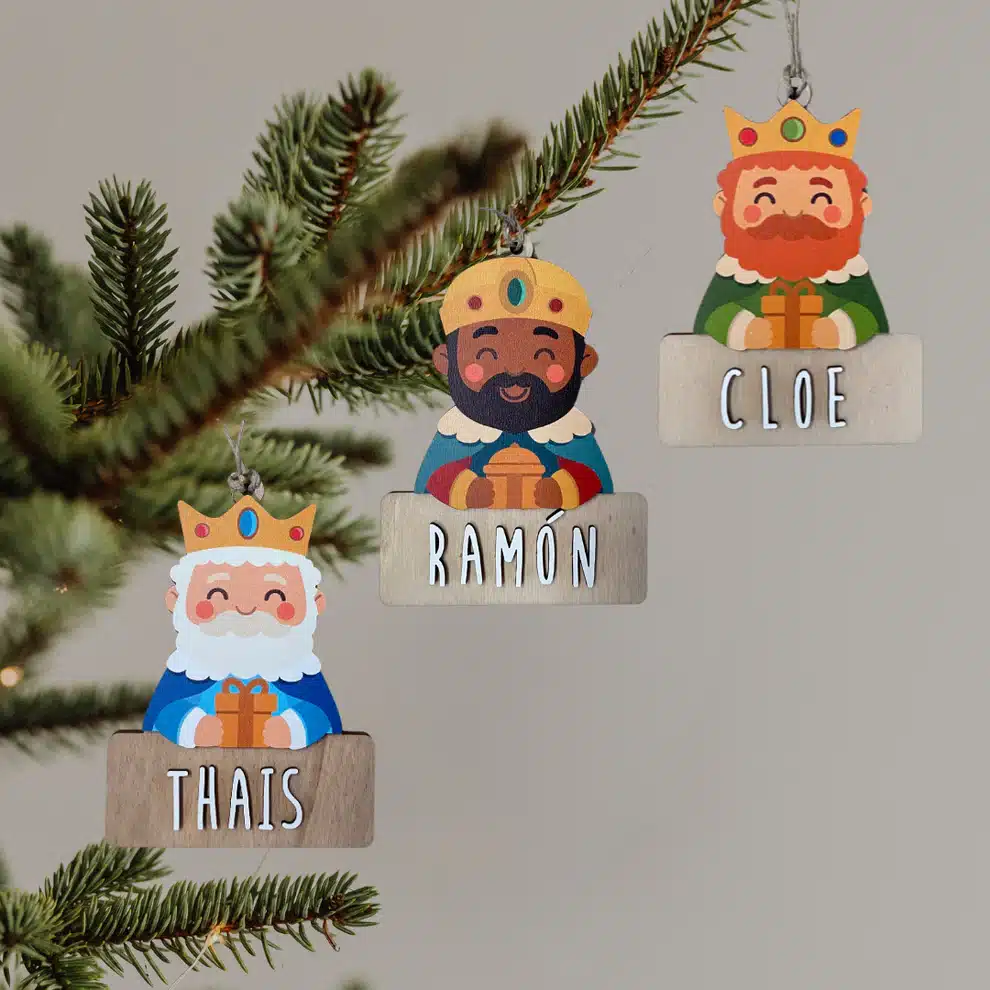Familias que buscan una decoración navideña única, personalizable y con tradición. Perfecto para complementar la colección completa de Reyes Magos personalizados.