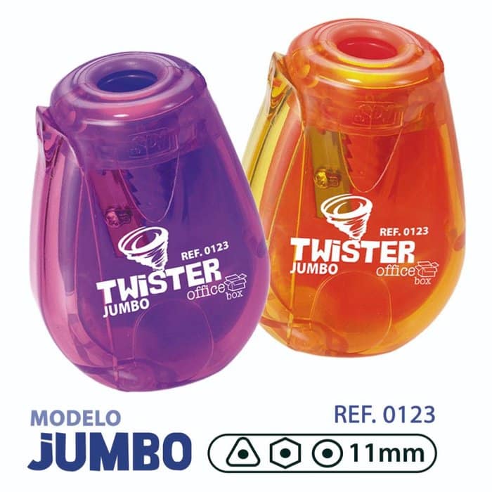 · Afilalápiz de plástico con mecanismo giratorio «carraca» que permite un afilado dos veces más cómodo y rápido.