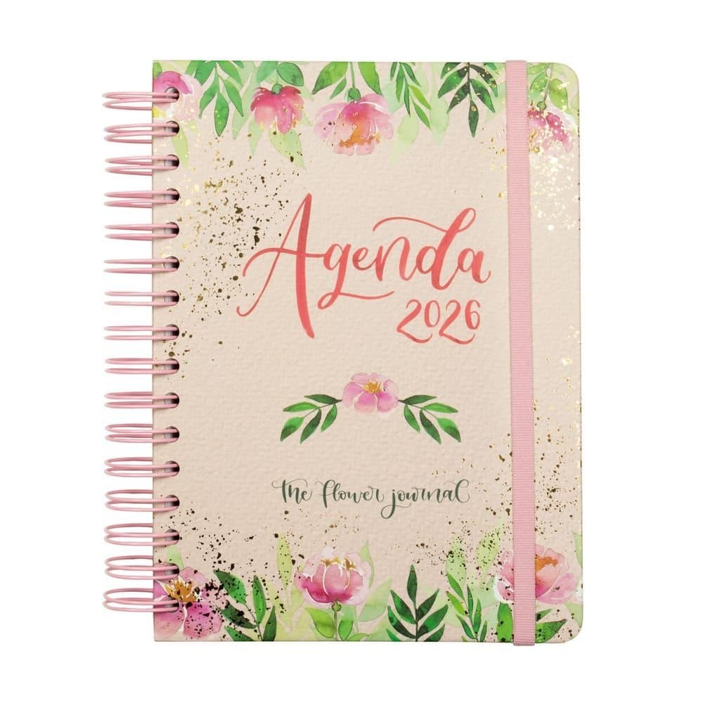 Agenda de tapa dura de cartón forrado con peliculado mate antirrayaduras. Con espiral doble, goma elástica y esquinas microperforadas para localizar rápidamente el día/semana en curso. Esta agenda se ha creado en colaboración con la diseñadora e ilustradora The Flower Journal, obteniendo unas agendas bonitas y funcionales. Con una estética limpia y minimalista, contiene información de interés en la anualidad y otros contenidos extra. Además, dispone de dos marcapáginas y adhesivos temáticos orientados a la organización personal. Formato similar a DIN A5; con las ventajas de una agenda portable y una de sobremesa. Duración: Enero 2026 Diciembre 2026 (12 meses). Interior: 1 Día Página. Amplio espacio de escritura para cada día. Dos líneas por hora. Con espacio en el lateral derecho para anotar las tareas del día no asociadas a una hora en concreto. Con planificación mensual cuadriculada al inicio de cada mes.Con información de los festivos de España. La anualidad de la agenda incluye: f