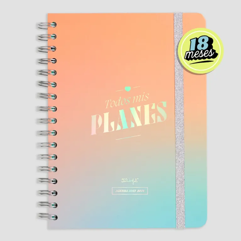 Agenda de estilo Office de Mr. Wonderful, con planificación para 18 meses: va de julio de 2023 a diciembre de 2024 y es de vista semanal.