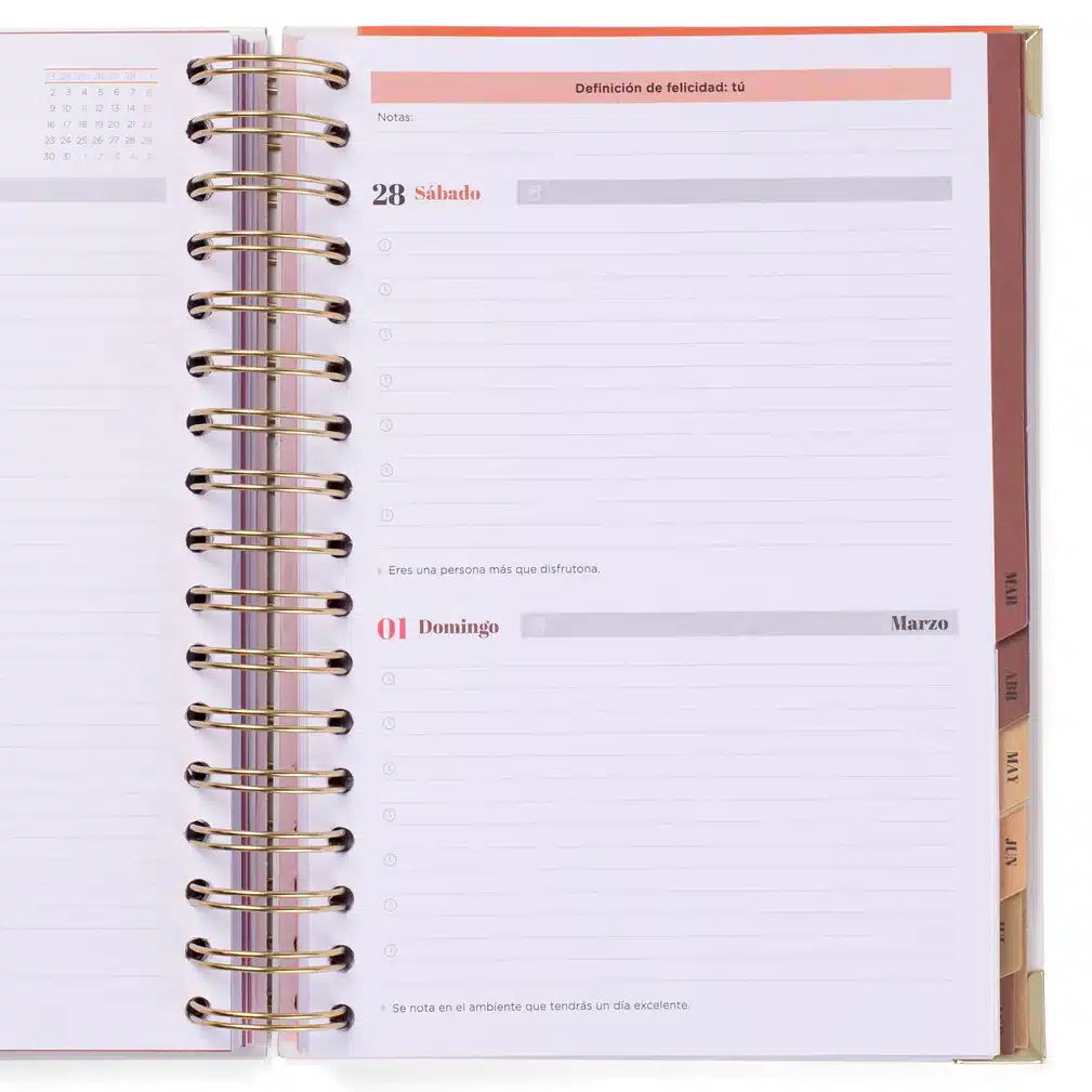 Con un diseño elegante y atemporal, esta agenda no solo te ayudará a organizar tus días, sino que también te animará a vivirlos con más intención y alegría.