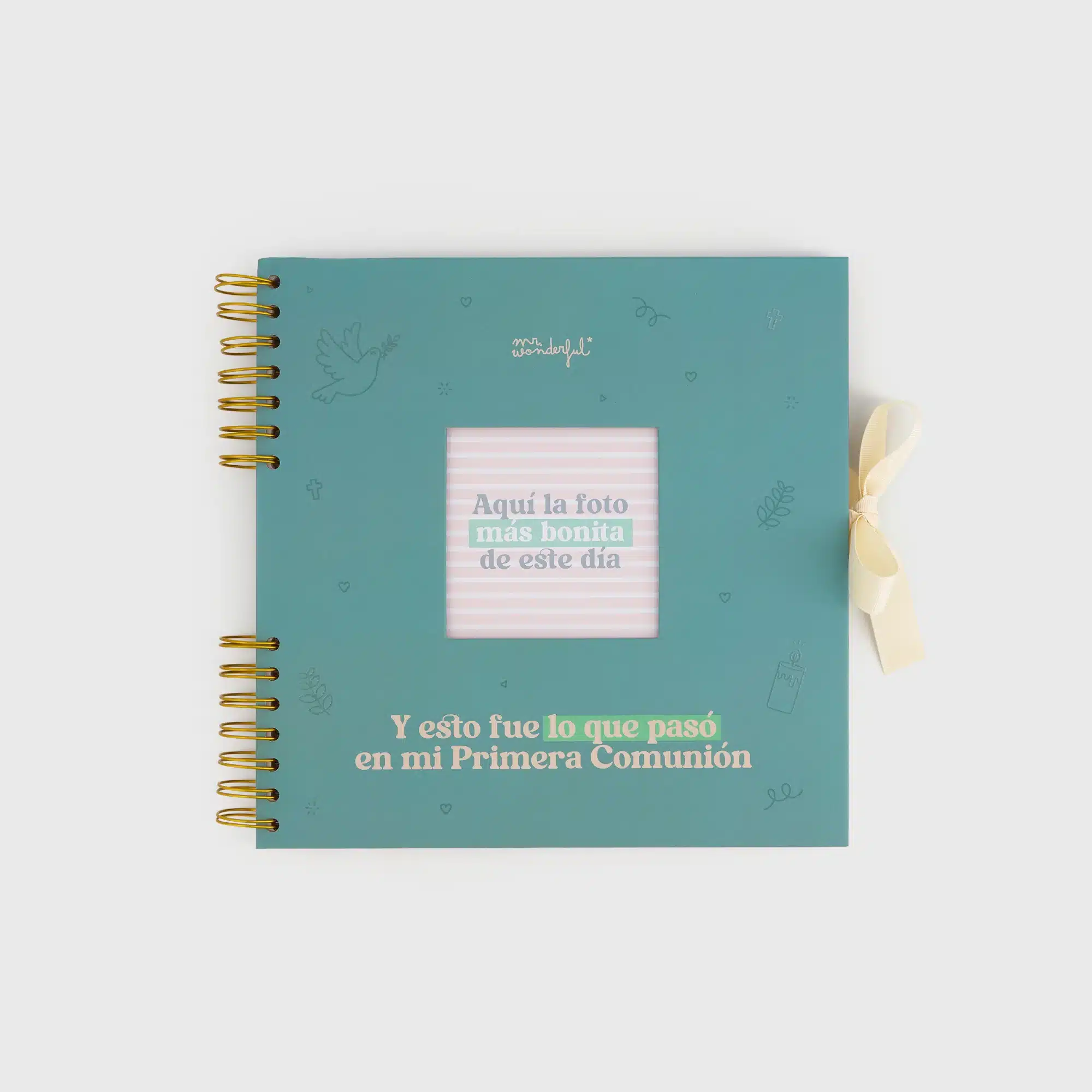 Álbum de fotos con diseño encantador, ideal para conservar los momentos más bonitos de la Primera Comunión.