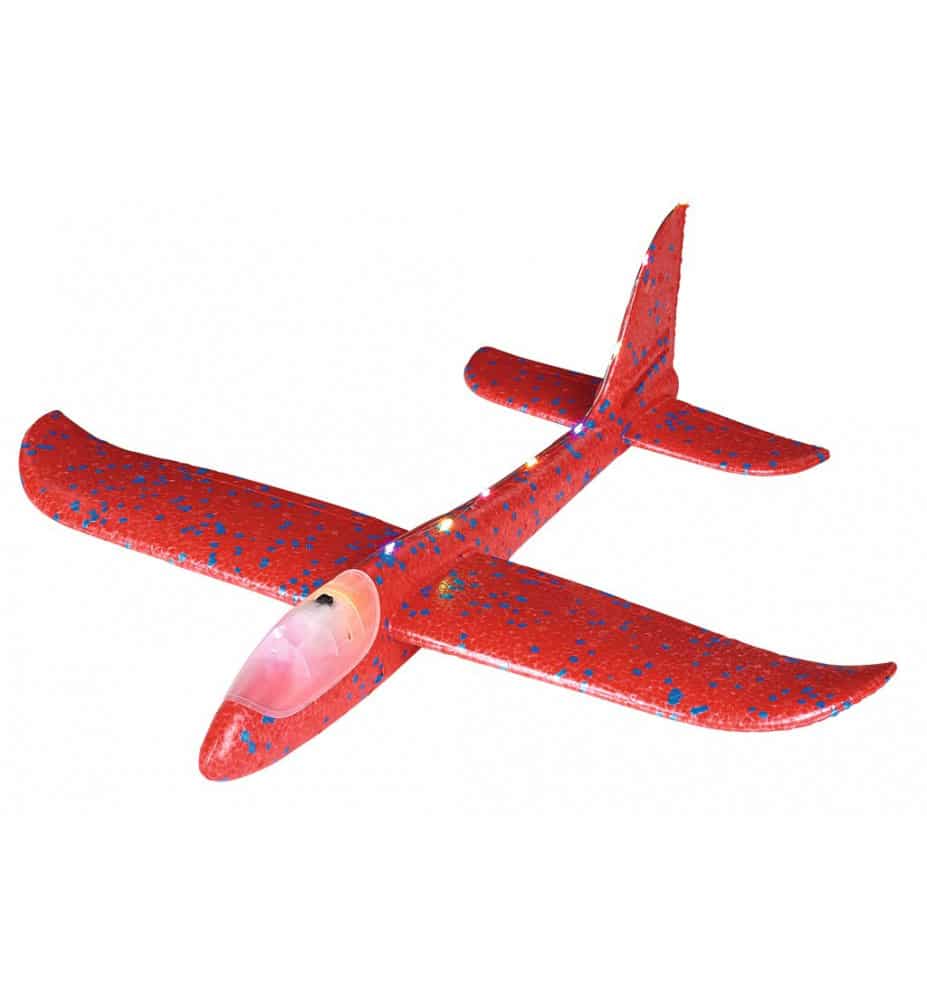 Este avión planeador infalible viene con un sistema de 10 LEDs que lo iluminan en la oscuridad. Tiene un interruptor de encendido y apagado, e incluye la opción de modo de parpadeo.
