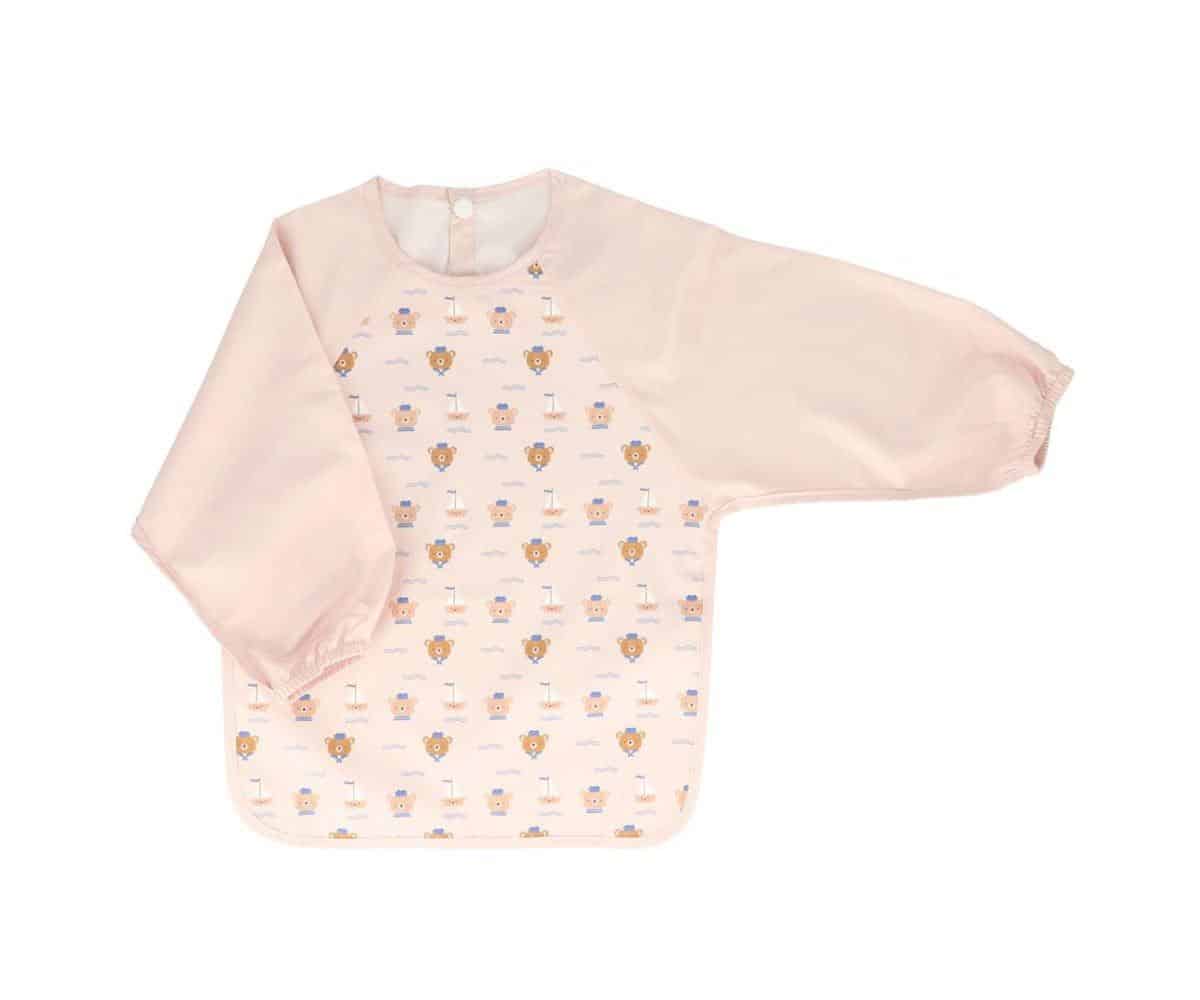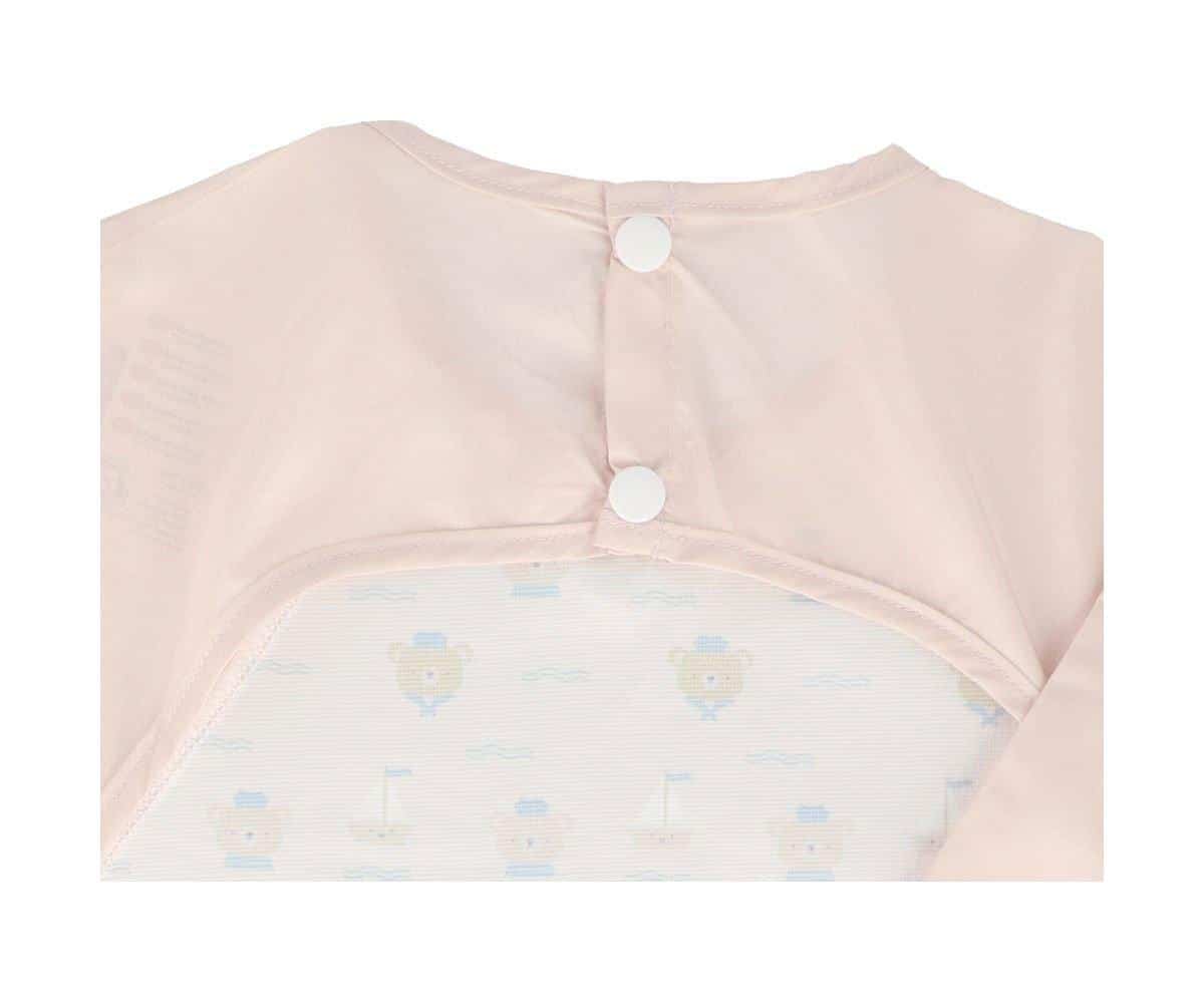 Babero con mangas fabricado en poliéster pero recubierto de una capa que repele el agua y los líquidos.