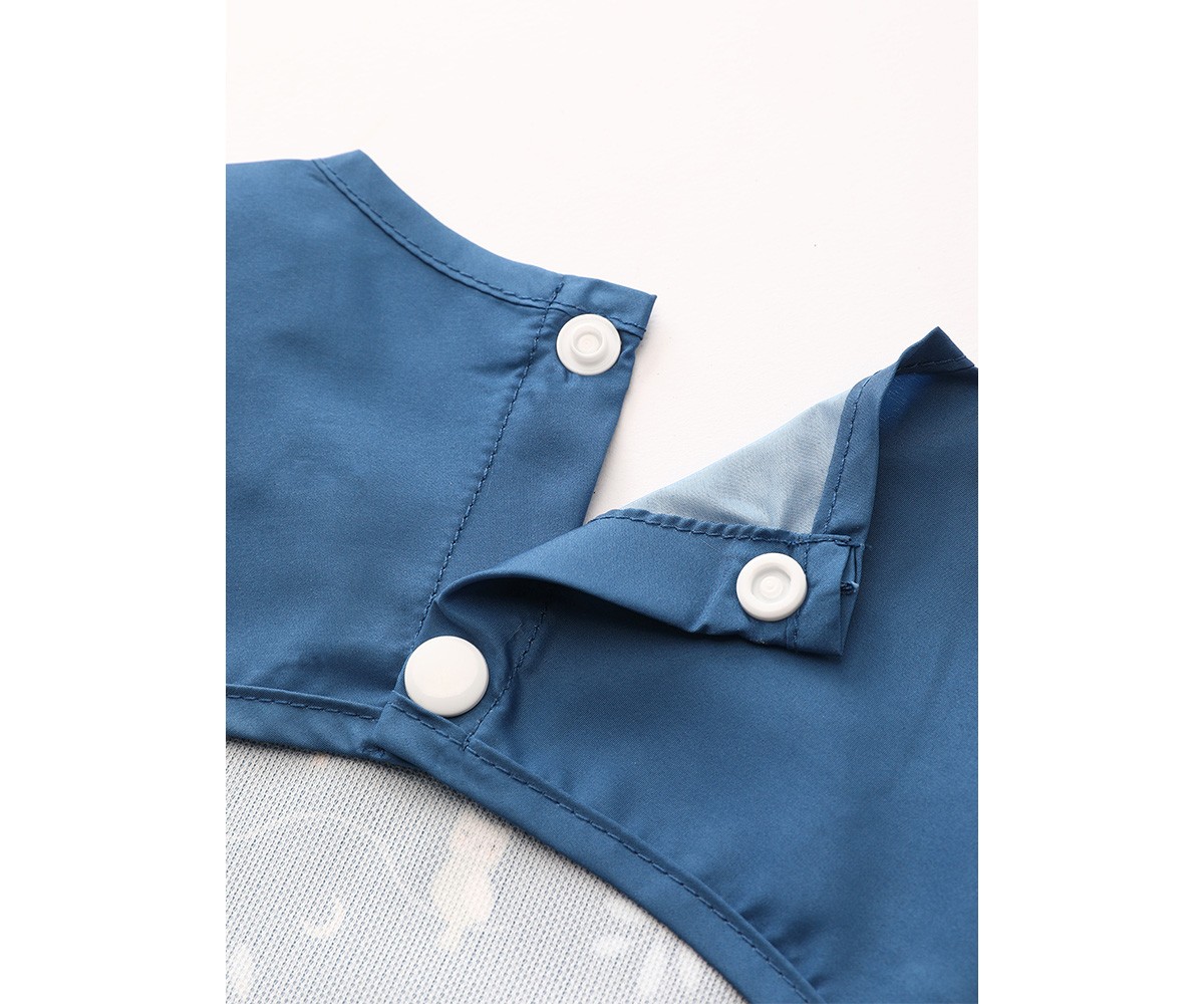 Su diseño de manga larga ofrece cobertura completa en brazos y pecho, convirtiéndolo en la opción perfecta tanto para casa como para la guardería. Incorpora cierres a presión ajustables, que permiten un ajuste seguro y cómodo, dando libertad de movimiento al niño mientras disfruta de su comida o actividades.