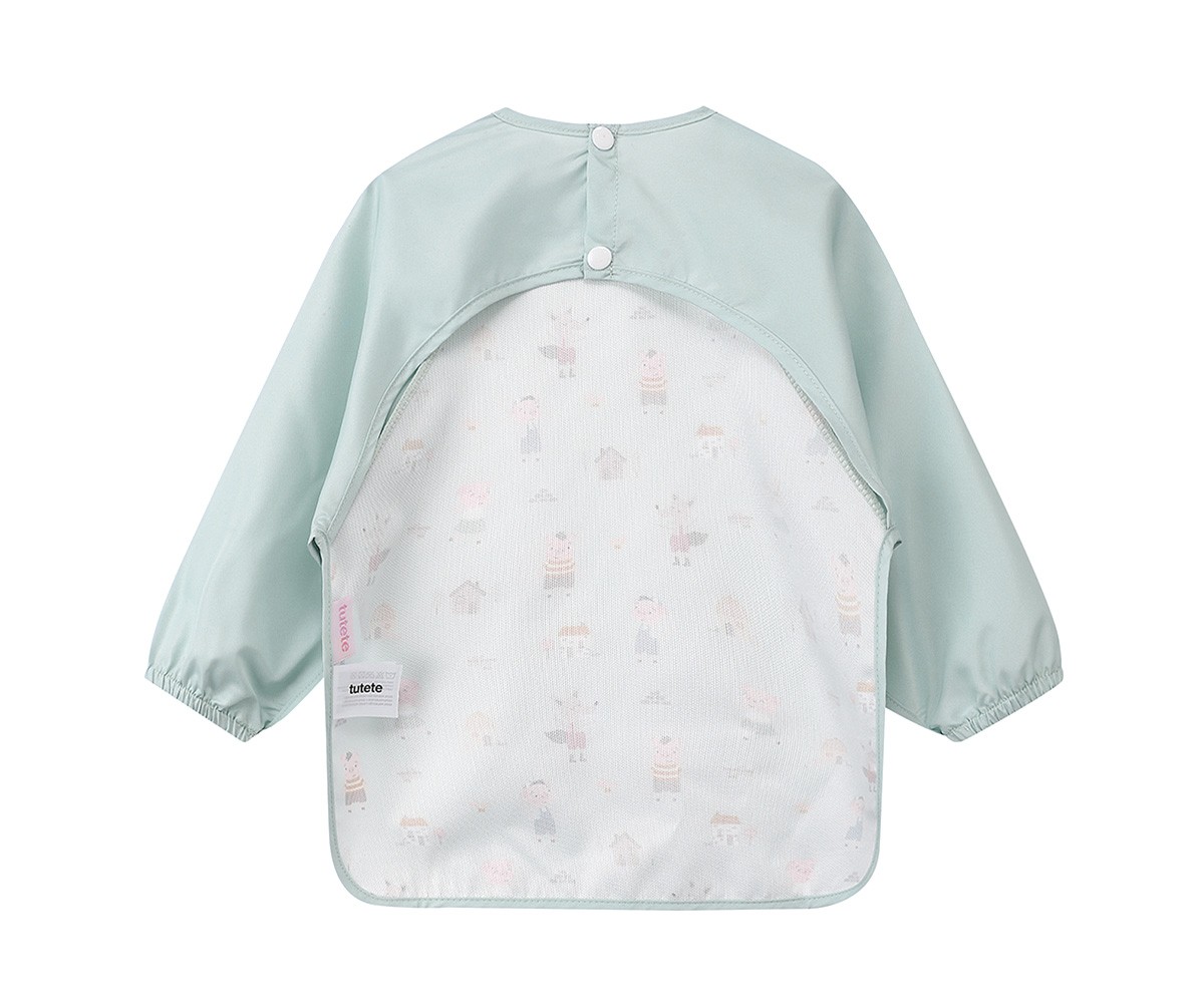 Su diseño de manga larga cubre pecho y brazos, ofreciendo una protección completa frente a manchas y derrames. Además, incorpora cierres a presión ajustables que permiten un ajuste seguro y cómodo, garantizando total libertad de movimiento para que los niños disfruten de la comida o actividades sin limitaciones.