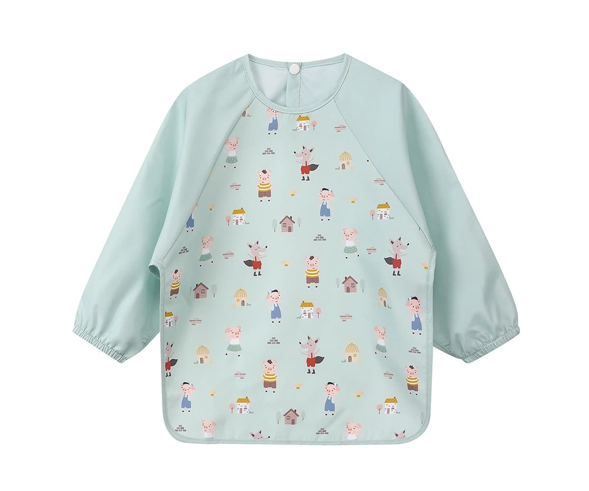 🛒 ¡Haz tu pedido hoy y protege la ropa de tu peque con el babero con mangas Tutete The Three Little Pigs, divertido, resistente y lleno de estilo!