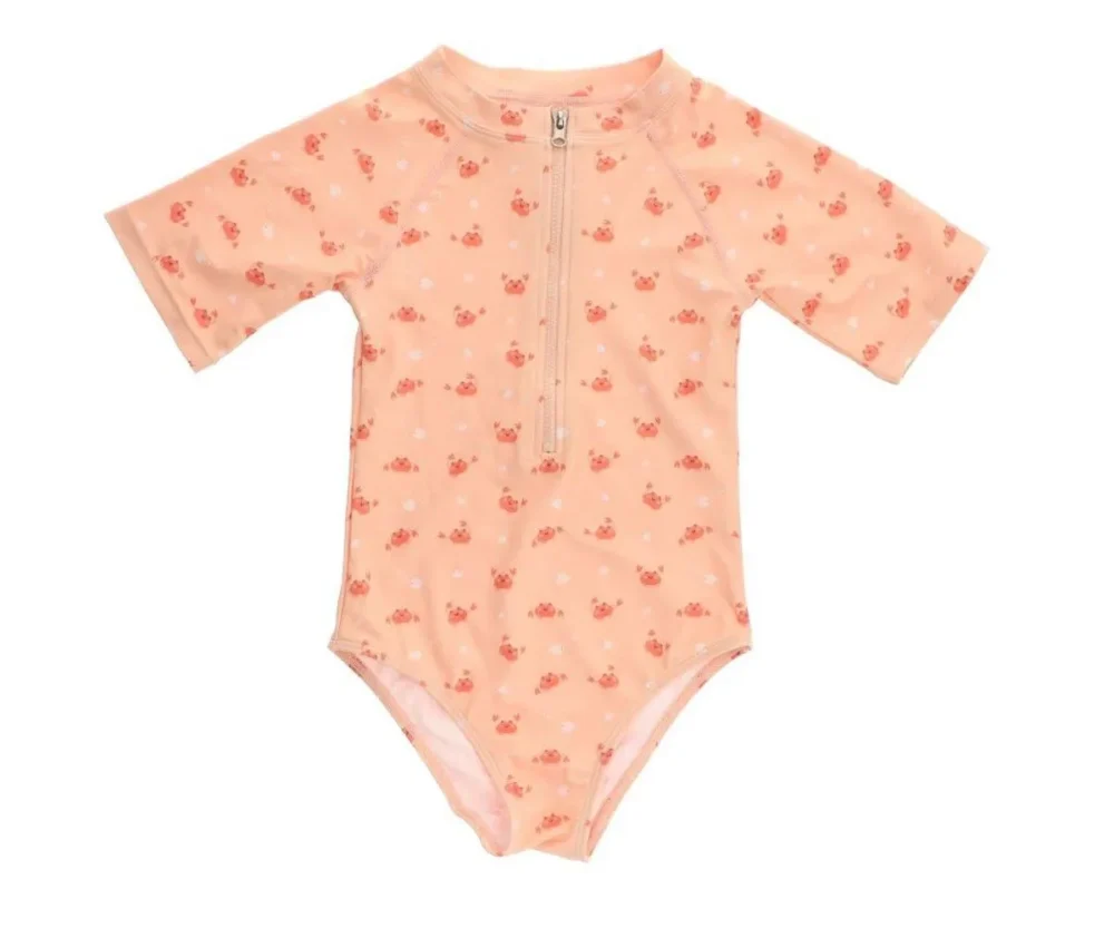 Bañador con cremallera delantera de Tutete que ha sido creado con una tela especial que protege a la piel de los rayos solares.