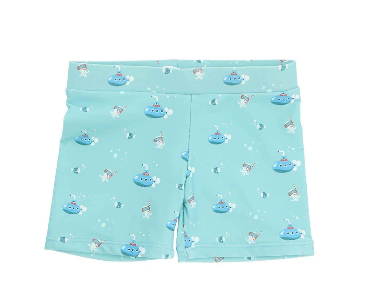 Bañador short de la colección Submarine de Monnëka que ha sido creado con una tela especial que protege a la piel de los rayos solares