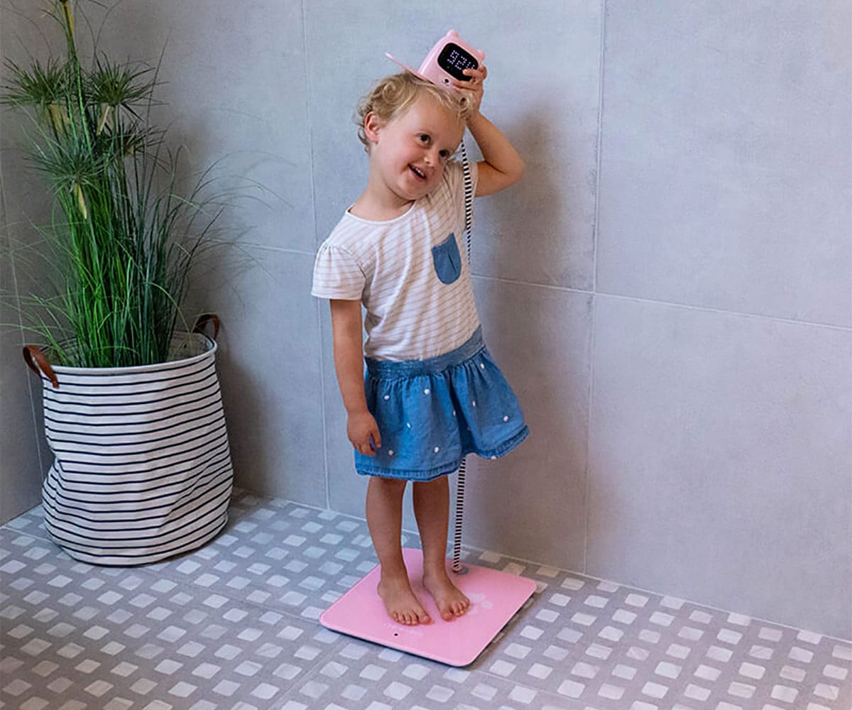 Esta báscula conectada para pequeños y mayores te permite pesarte y medirte mientras te diviertes. La báscula y el dispositivo con forma de cabeza de oso indicarán tu peso y cuando se abran, te indicarán tu talla.  Gracias a su cinta para desenrollar, también podrás medir a tu bebé.  La báscula conectada no tiene botón, se enciende y se conecta automáticamente en cuanto pisas la báscula o al abrir el receptor en forma de cabeza de oso.