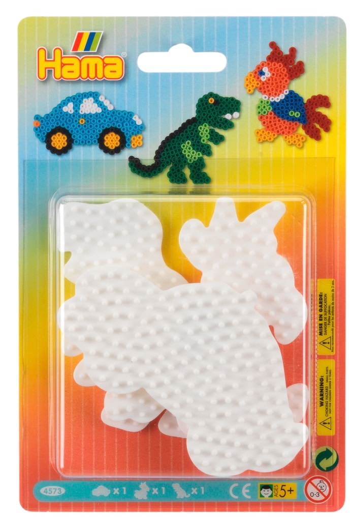 Blister Hama Beads Midi 3 Placas. Pegboards pequeñas coche, loro y dinosaurio