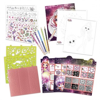 – Incluye: 80 plantillas, 80 plantillas de diseños inspiracionales, 3 plantillas para reseguir, 2 páginas de pegatinas, 2 páginas de pegatinas para colorear, 5 lápices de colores, 8 técnicas de colores.