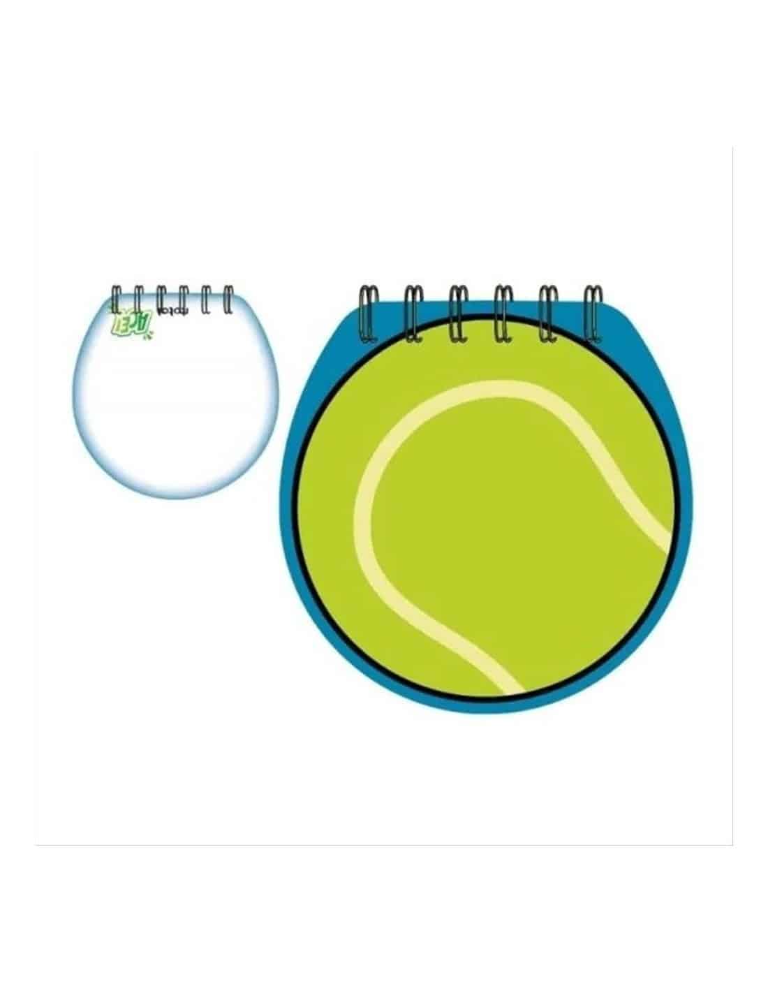 Cuaderno de notas con diseño 3D de pelota de tenis, ideal para apuntes, ideas o dibujos, combinando funcionalidad y diversión en un formato compacto.