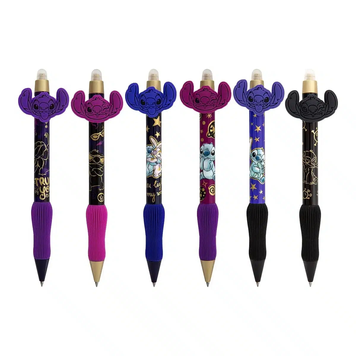 Bolígrafo borrable con diseños modernos de la colección Stitch Gold, ideal para el colegio y el día a día.