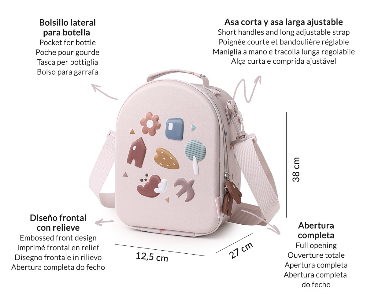 Ideal para las familias que buscan funcionalidad sin renunciar al diseño, esta bolsa térmica hará que la hora de la merienda sea cómoda, higiénica y divertida.