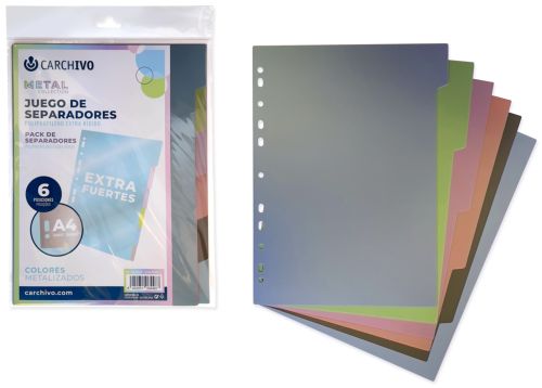 Bolsa separadores multitaladro a4 metal extra-fuerte 6 pestañas