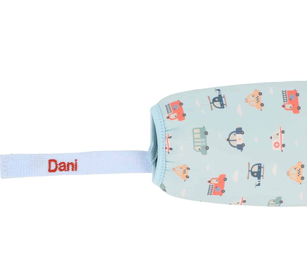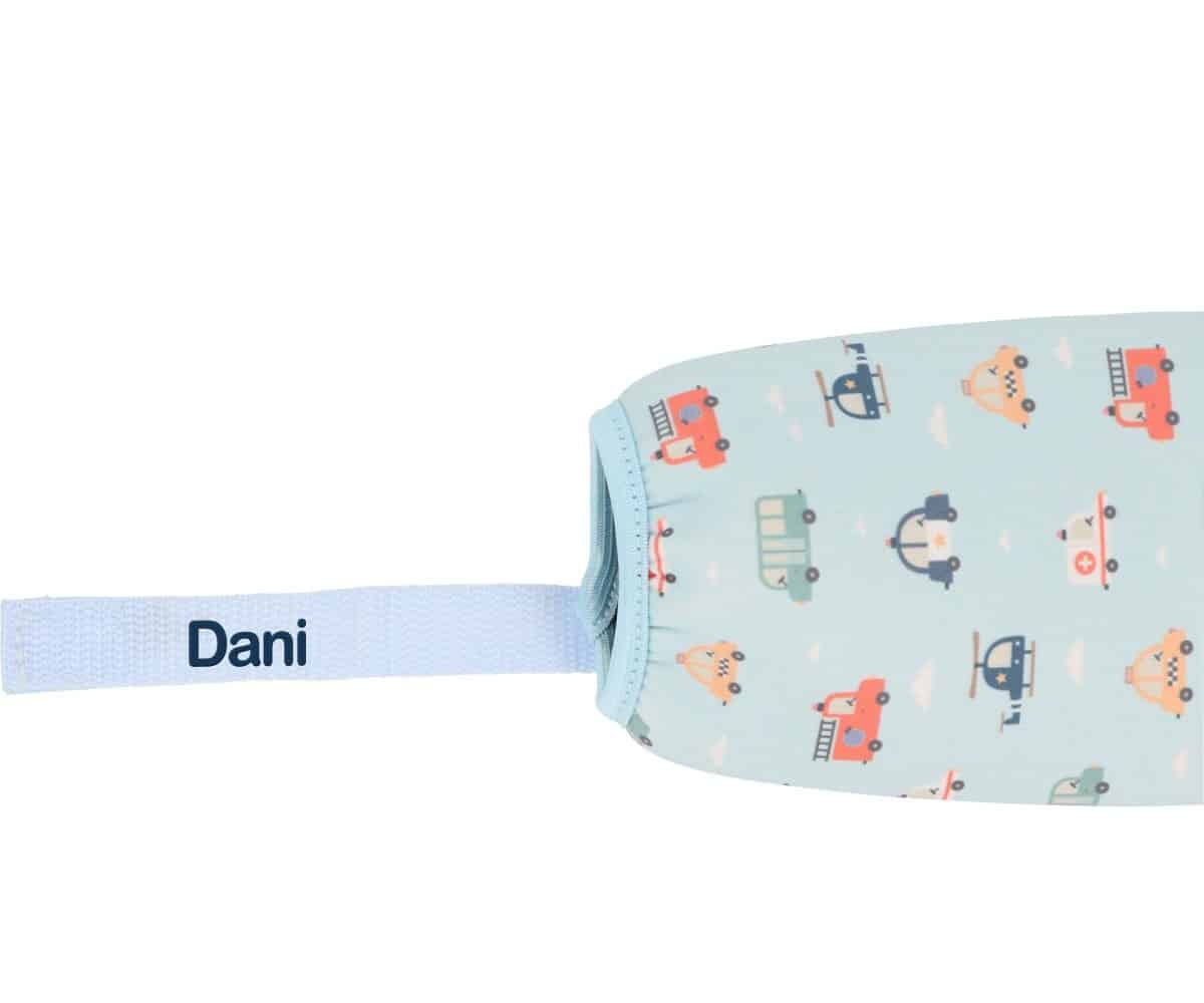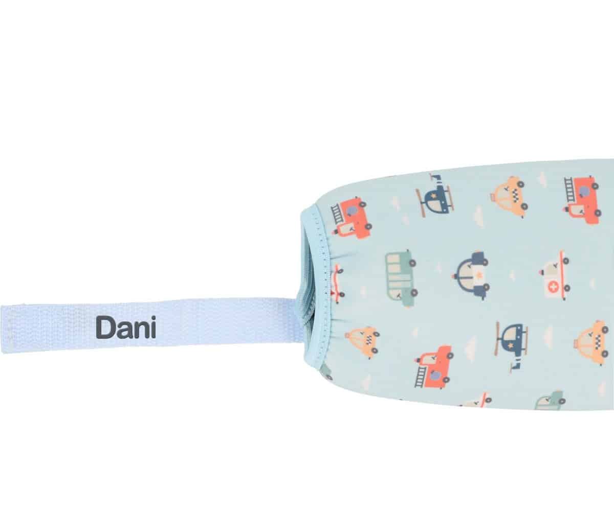 Esta botella de acero inoxidable de 500 ml con funda de neopreno de la colección City Cars de Tutete es la opción perfecta para mantener el agua fresca durante más tiempo y reducir el uso de plásticos. Su funda extraíble, además de proteger la botella, se puede personalizar con el nombre de tu peque, haciéndola única y fácil de identificar.