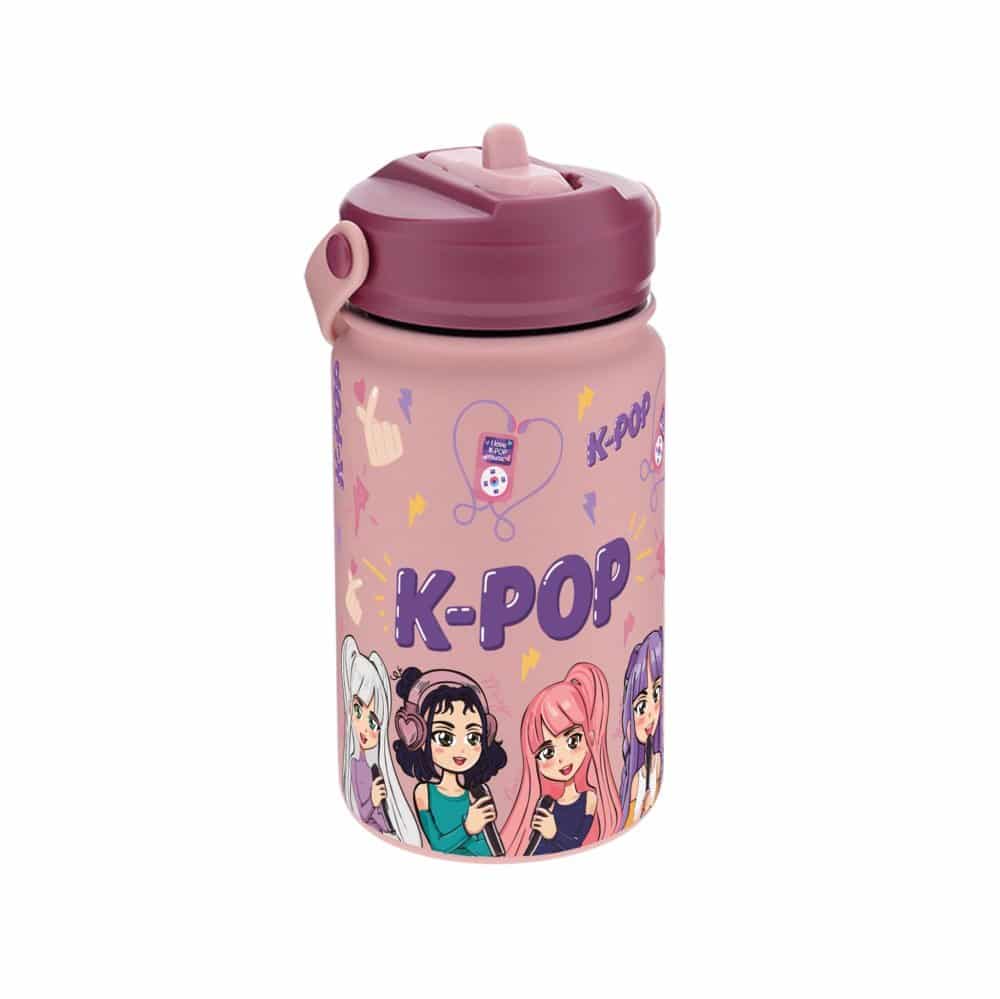 Botella térmica con pajita integrada de la colección K-Pop, pensada para mantener las bebidas frías o calientes durante más tiempo con un diseño moderno y actual.