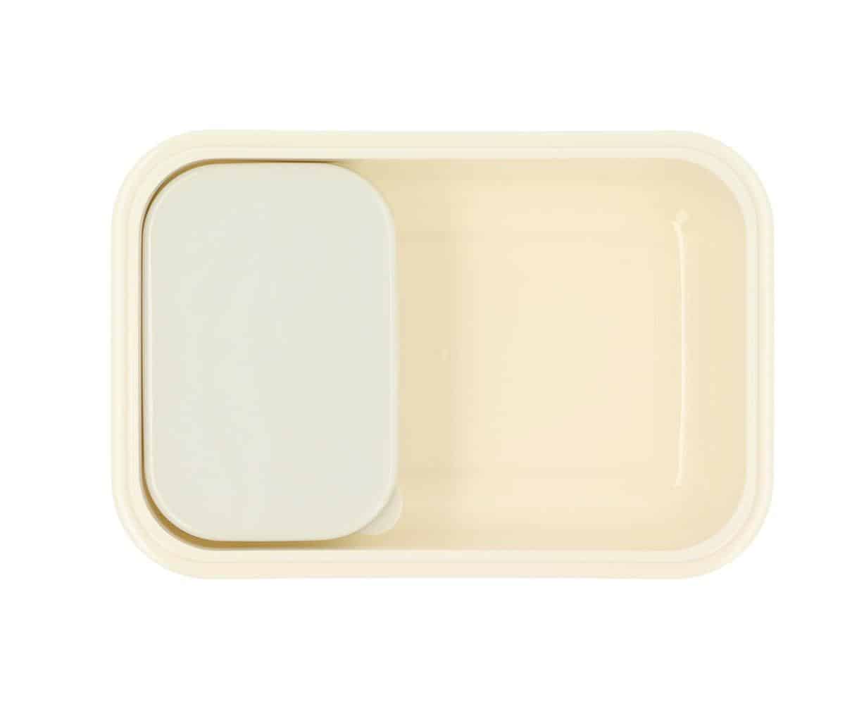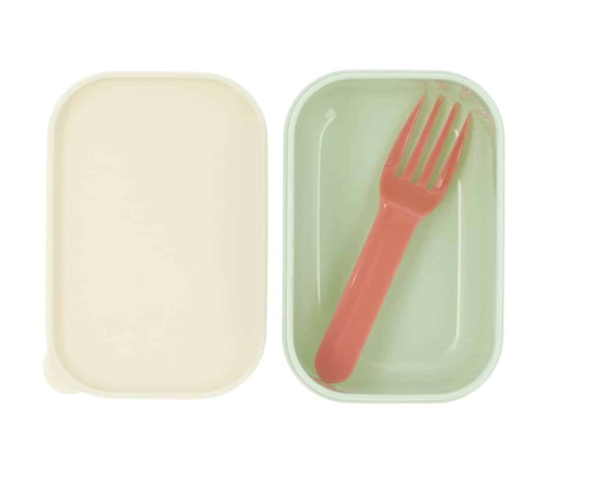 Fiambrera bento para llevar almuerzo al cole y con una cajita interior separadora, con un tenedor, para llevar también la fruta.