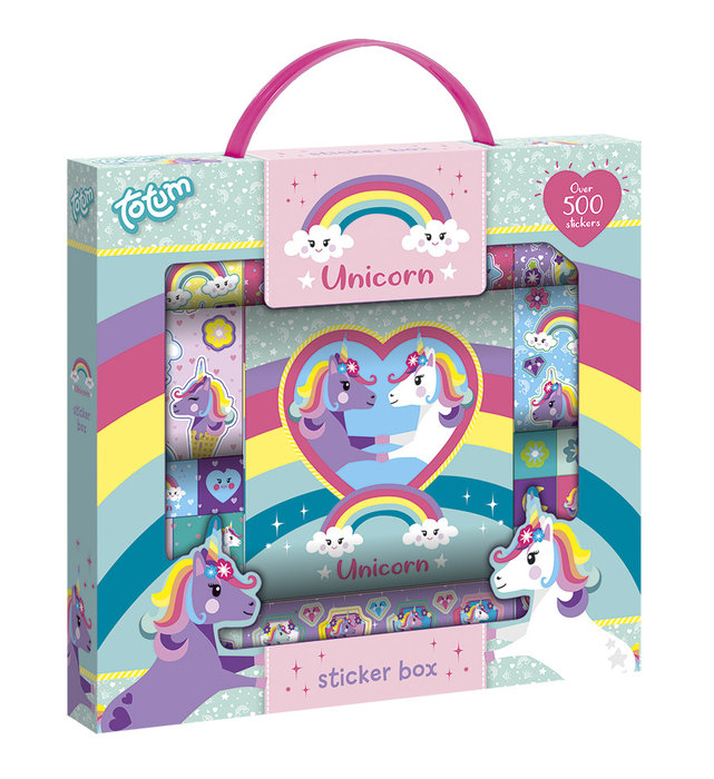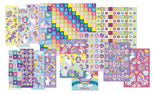 Unicornio caja de stickers con 12 rollos, 2 hojas y folleto incl. más de 1000 stickers de varios tamaños