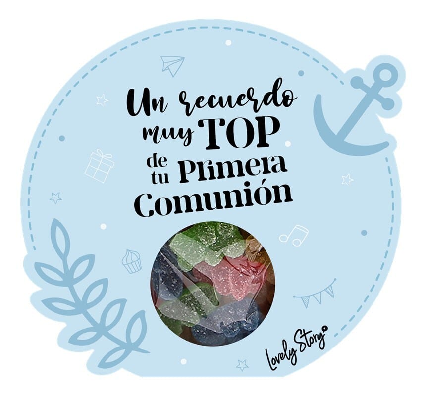 • Diseño: Cajita con mensaje «Un recuerdo muy top de tu Primera Comunión»