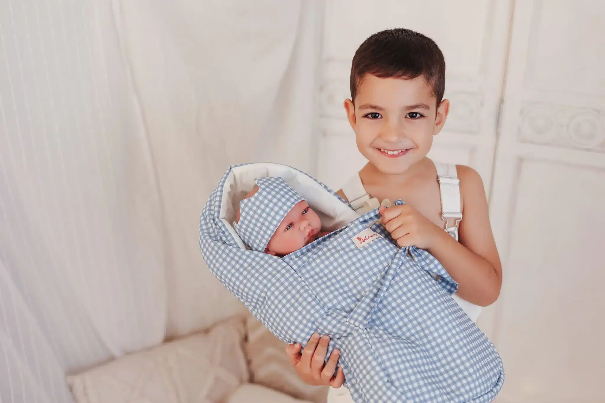 • Permite acurrucar y llevar al muñeco de forma cómoda y segura.