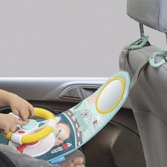 ¿Hora de viajar? ¡Tenemos todo lo que tu peque necesita para distraerse! Con este centro de actividades el pequeñín se lo pasará de maravilla. Tiene bonitos colores e ilustraciones que lo hacen parecer un coche de verdad ¡y un volante que hace sonidos!