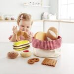 – Contiene 9 piezas: Una pieza de pan tostado, una barra de pan, un cruasán, una galleta con chispas de chocolate, una galleta de soda, una galleta con mermelada, una galleta de mantequilla con forma de corazón y un pastel en capas.