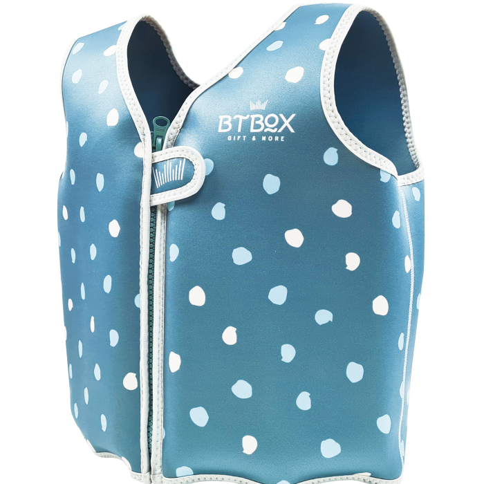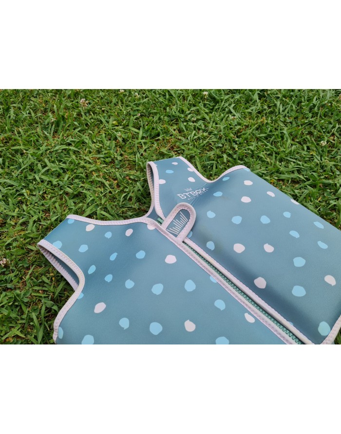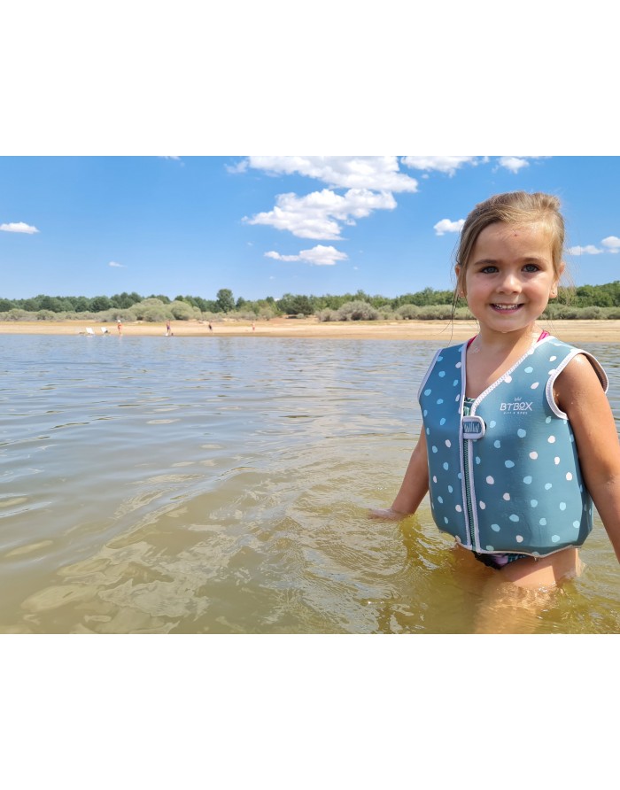 En su interior tiene 8 compartimentos, cada uno de ellos con 3 piezas que proporcionan la flotabilidad alrededor del torso y que se pueden ir quitando según el niño/a va cogiendo más confianza y soltura en el agua.