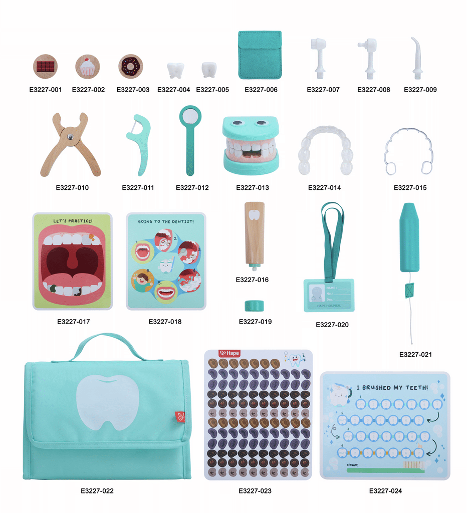 Gracias a sus 8 dientes extraíbles, los niños pueden practicar técnicas de limpieza, uso del hilo dental y cuidado dental, desarrollando la motricidad fina y la coordinación. A través del juego de roles, se familiarizan con las visitas al dentista, mejoran su lenguaje y comunicación, y reducen la ansiedad asociada a este tipo de consultas.