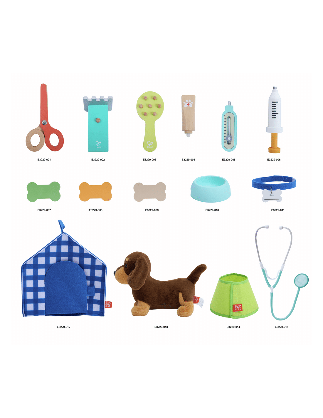 • Accesorios de juego para simular una clínica veterinaria completa.