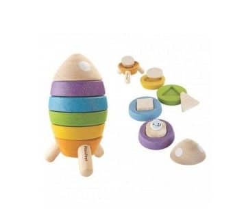 El clásico juego de apilar ahora en una original y preciosa propuesta de PlanToys: ¡un cohete con astronauta!
