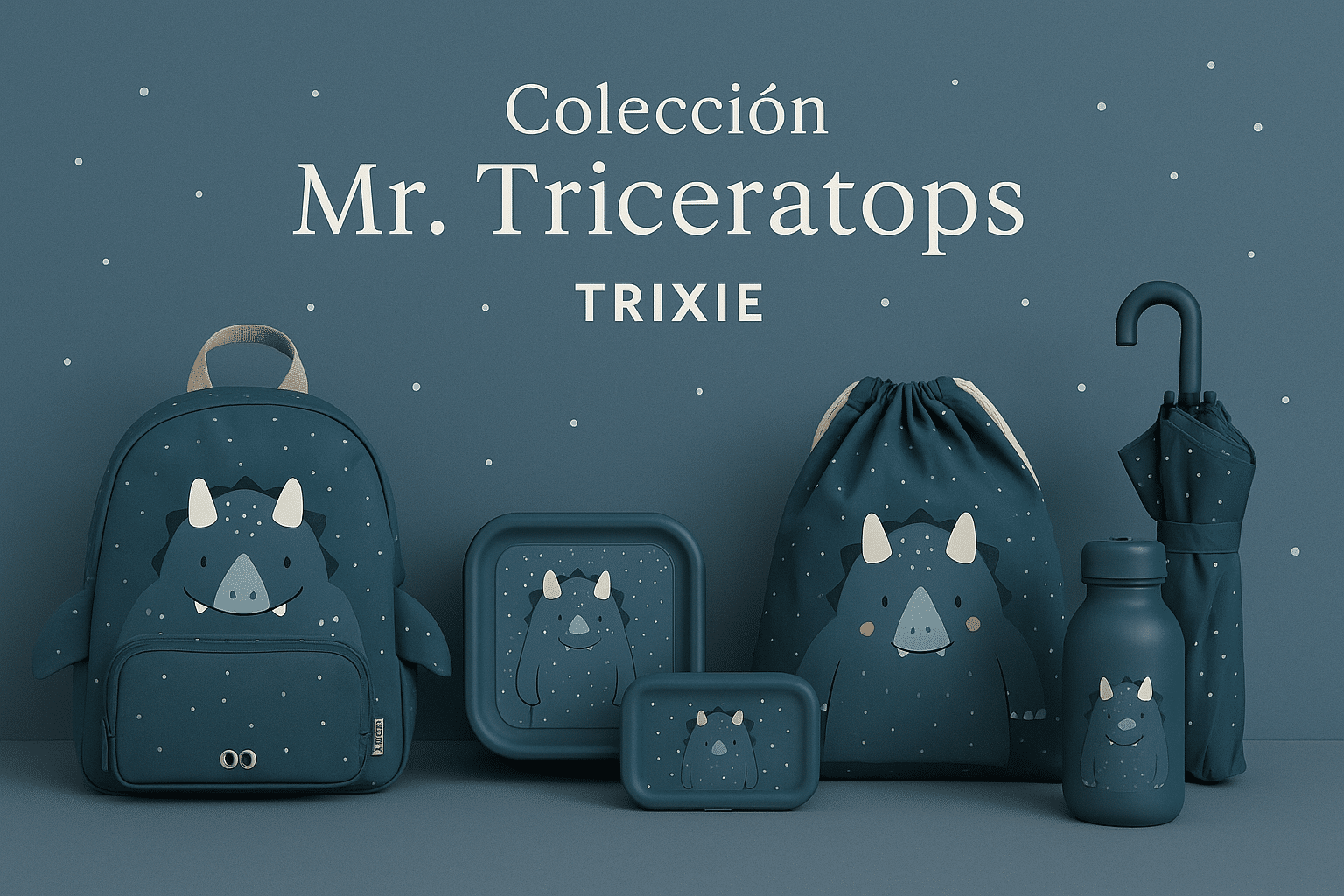 La colección Mr. Triceratops de Trixie ofrece productos funcionales con un encantador diseño de dinosaurio, ideales para acompañar a los niños en sus actividades diarias.