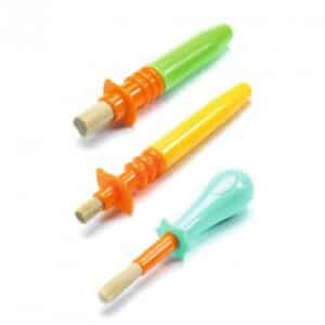 Estos pinceles son de varios tamaños, muy fáciles de coger gracias a una empuñadura ergonómica más voluminosa, además son muy limpios pues no tocan la mesa ni dan vueltas.