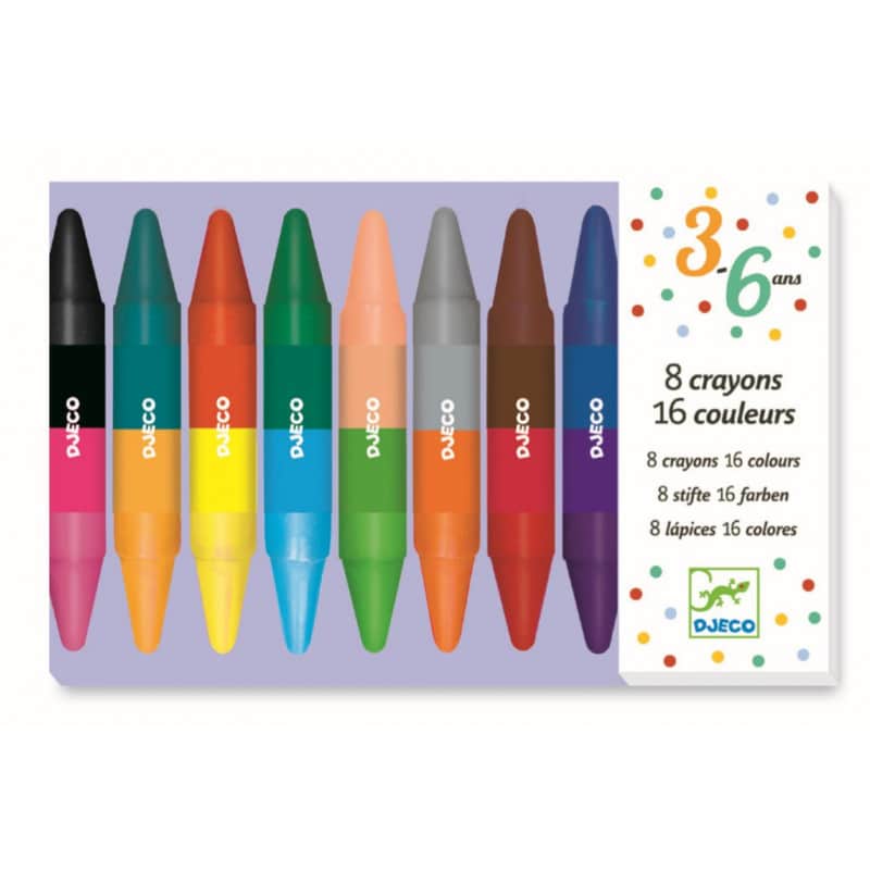 – Set de 8 ceras de colores de doble cara, con 16 colores para elegir.