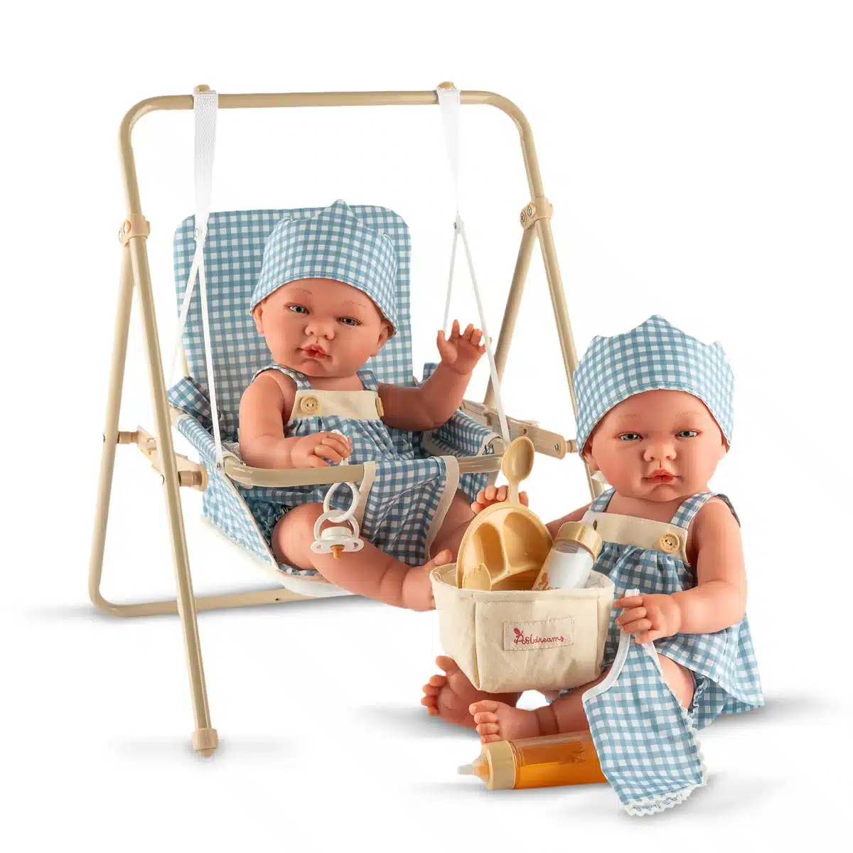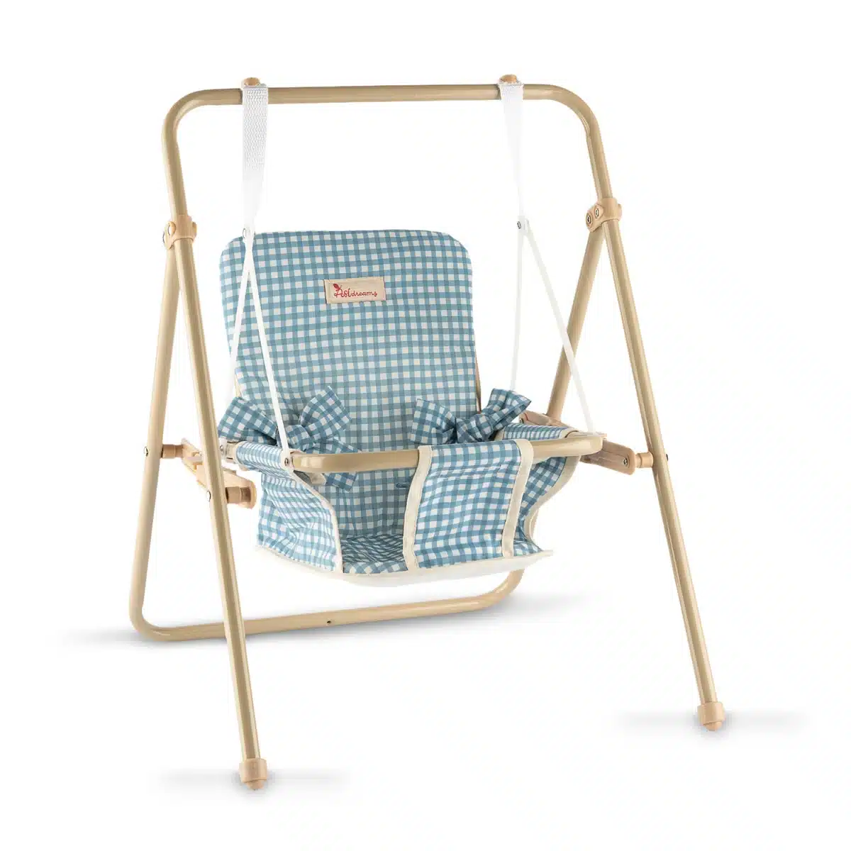 Columpio resistente y estable para muñecos, ideal para complementar el juego simbólico y fomentar la creatividad.