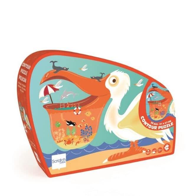 Diviértete con tu hijo/a y ejercita y desarrolla al mismo tiempo la memorización y la capacidad de construcción. Puzzle de cartón de 24 piezas con la imagen de un pelícano.