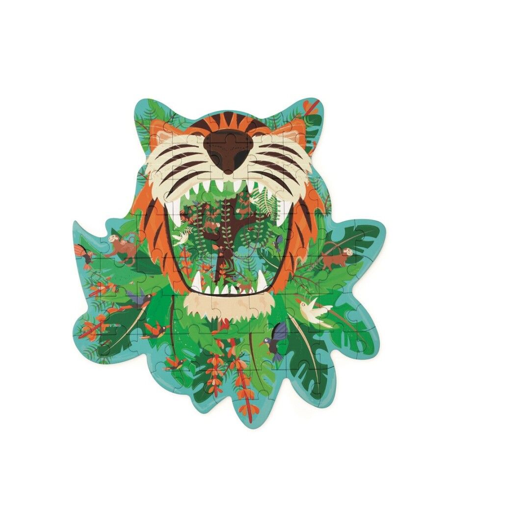 Puedes crear una colorida imagen de un tigre, uniendo las 59 piezas de este puzle. Viene presentado dentro de un estuche precioso y resistente. Ideal para niños a los que les gustan otros retos diferentes al de montar un puzle clásico.
