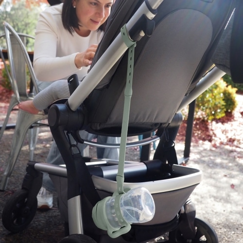 Mantén las tazas, biberones y juguetes del bebé siempre a su alcance y sin caídas con esta correa ajustable y segura. Compatible con diferentes superficies y objetos, es perfecta para sillas de paseo, tronas y más.