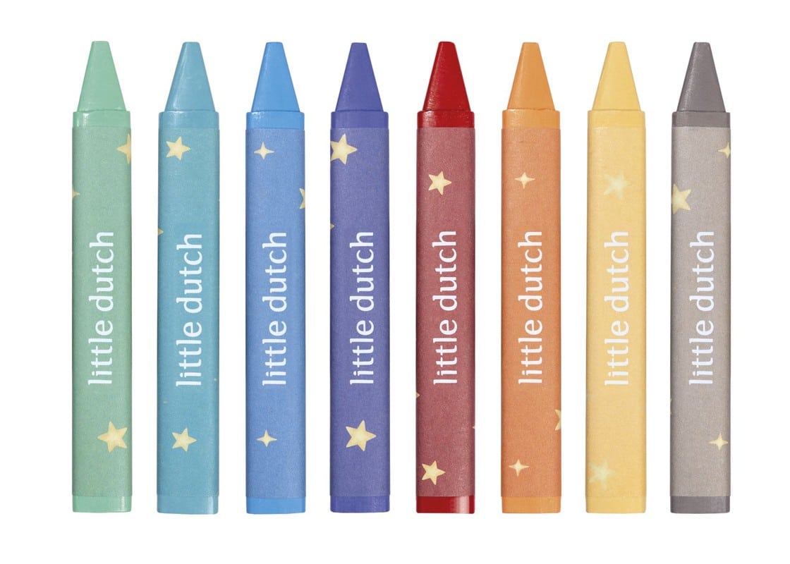 Un set de 8 crayones de cera de la colección Jim de Little Dutch, diseñados para fomentar la creatividad y el desarrollo artístico de los más pequeños.
