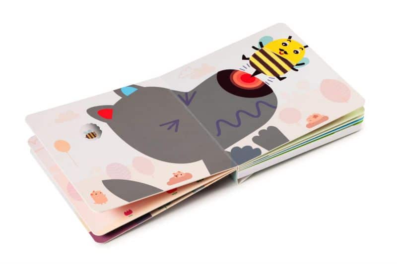 Libro sensorial con sonidos, texturas e ilustraciones para estimular la curiosidad desde los primeros meses.