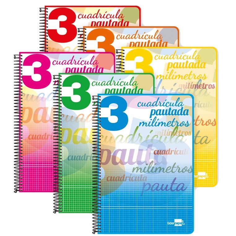 Cuaderno espiral liderpapel cuarto pautaguia tapa dura 80h 75 gr cuadro pautado 3 mm con margen.