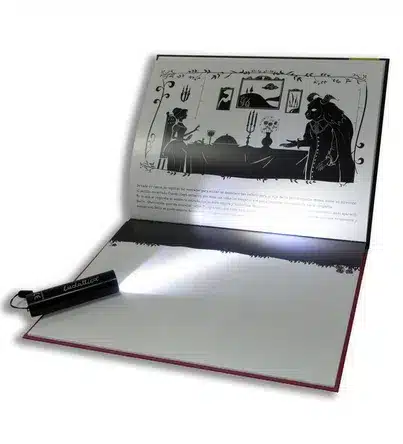 Cuentos Oscuridad La Bella y la Bestia de Ludattica. Había una atmósfera extraña en la habitación, a la vez mágica y misteriosa Bella se sentó y esperó, hasta que en cierto momento apareció la Bestia. Revive la magia de La Bella y la Bestia en esta versión de la historia original adaptada libremente a libro-teatrillo de sombras. Adéntrate en el castillo de la Bestia con nuestra protagonista, enciende la linterna y sumérgete en un evocador juego de sombras mientras las ilustraciones cobra vida ante tus ojos.