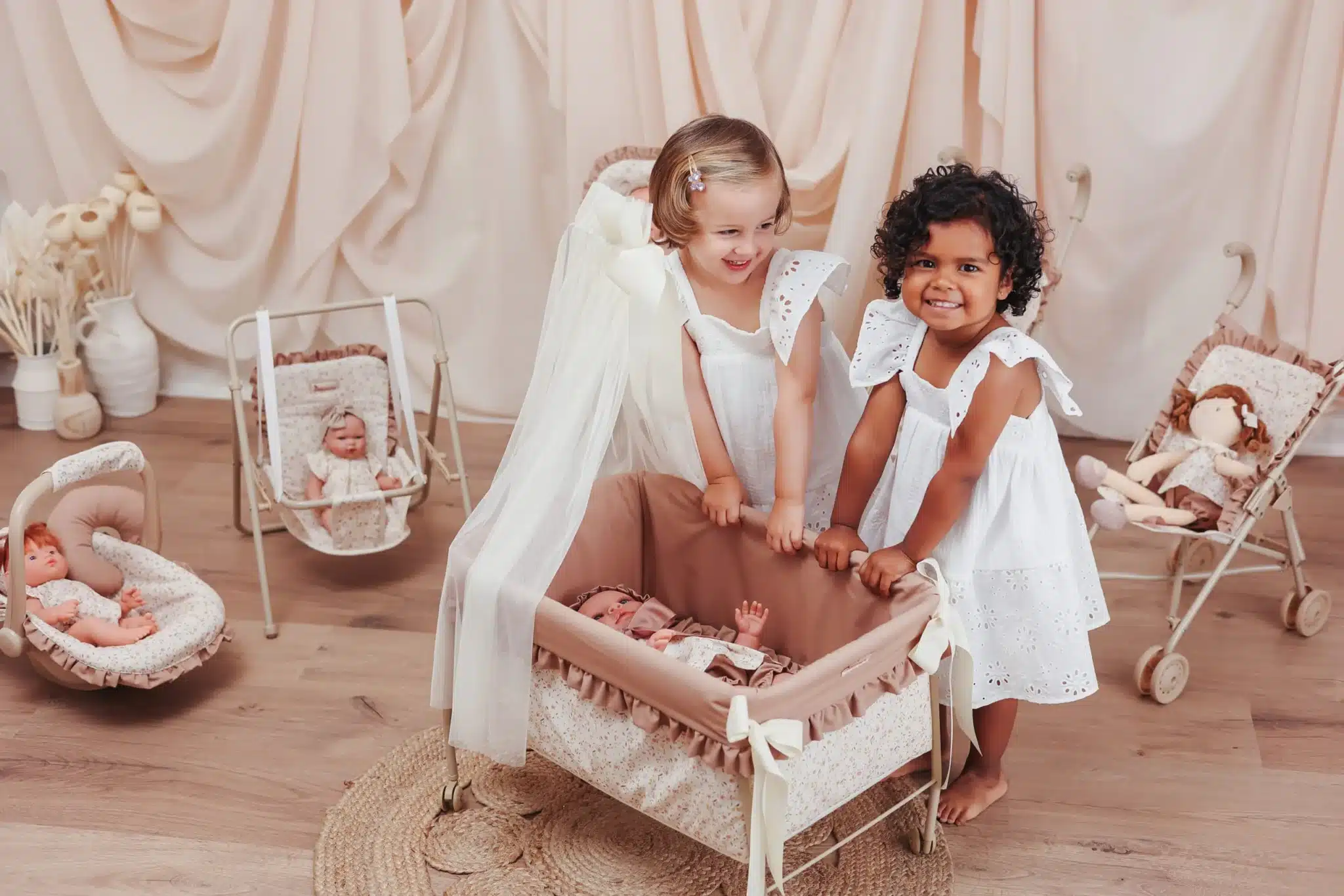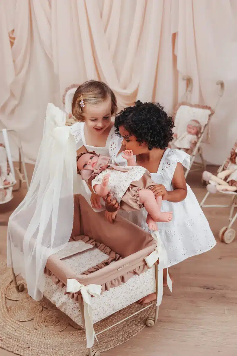 Niños y niñas que disfrutan del juego simbólico y el cuidado de muñecos, y que buscan un accesorio elegante, resistente y lleno de detalles.