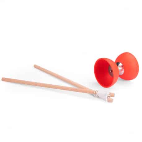 Te divertirás haciéndolo rodar por la cuerda y tirándolo para luego atraparlo con los palos de madera sin que se caiga.