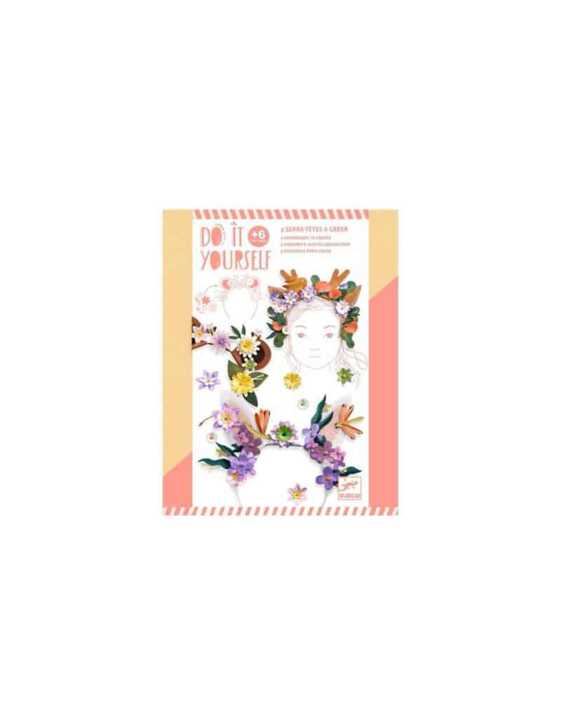 Este precioso set de manualidades de la colección Do It Yourself de Djeco invita a los peques a diseñar y personalizar 3 diademas florales, utilizando una gran variedad de materiales decorativos incluidos.